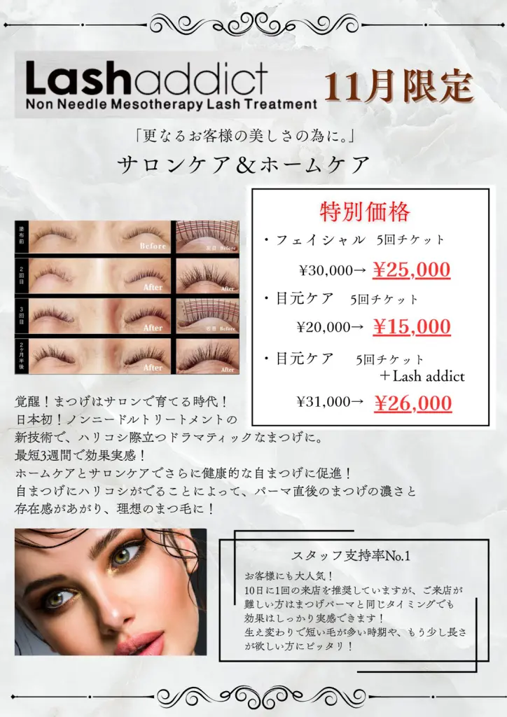 まつげを育毛ケアして、ぐんぐん太く長く丈夫になる大人気ラッシュアディクトサロンケアをお得なチケットでご購入いただけます!